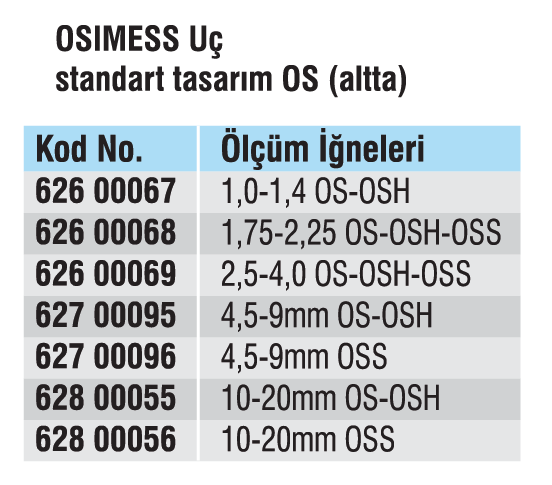 OS'ye ek olarak Ø1.75.mm den itibaren kör delikler için uçlarla birlikte