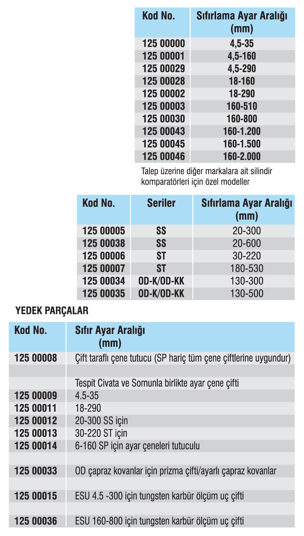 Mastar Bloklar yardımıyla Hassas Silindir Komparatörü İki-Nokta Temasla Sıfırlama Ayarı için kullanılır.
