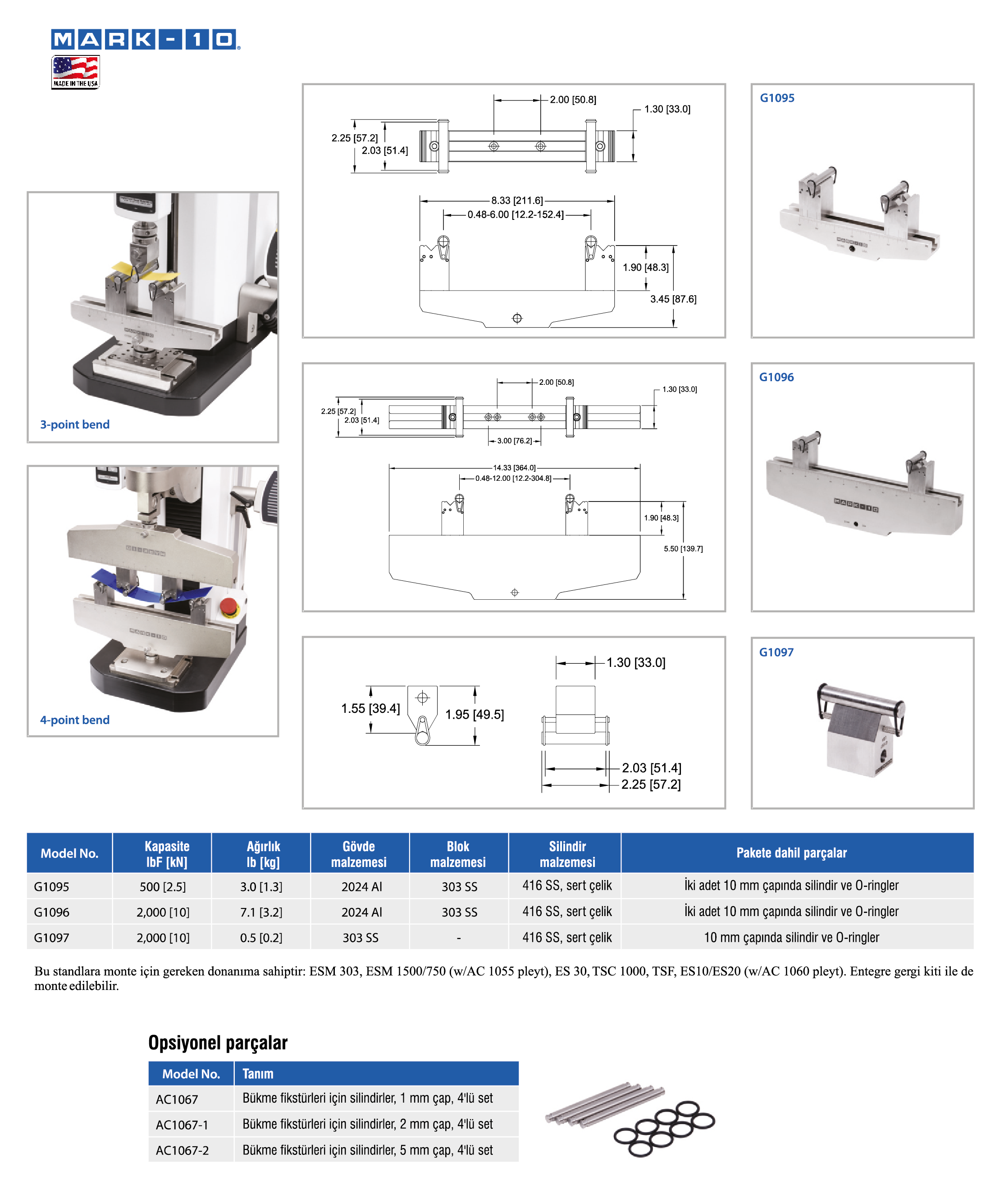 Plastikler, metaller, seramikler, borular ve diğer pek çok malzeme için 3-nokta ve 4-nokta bükme testi fikstür ailesidir.