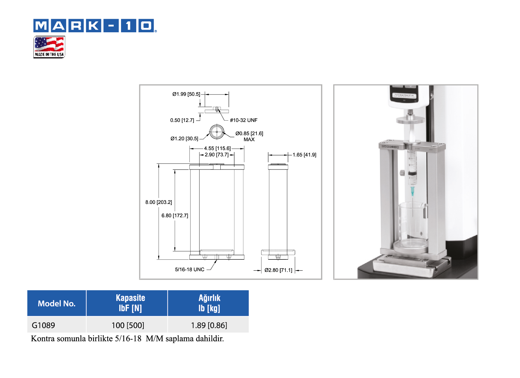 ISO 7886-1 ve diğer standartlara uygun olarak şırınga pistonunun basma kuvveti testi için kullanılır.